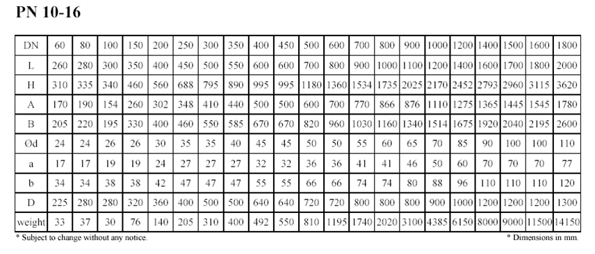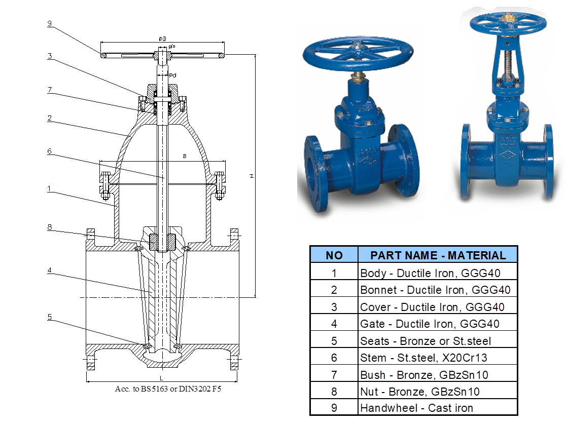 Body and Bonnet : Grey cast iron (GG25) or Ductile Iron (GGG 40 or 50)